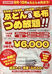 毛布・ふとん・こたつ・カーペットクリーニング30%OFFセール