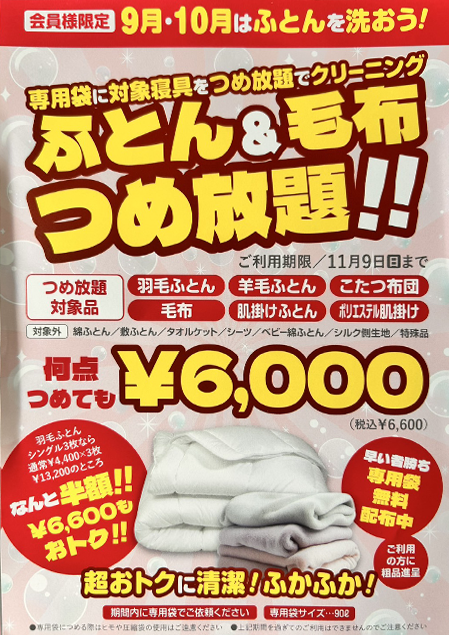 会員様限定 毛布・ふとん翌日仕上げ