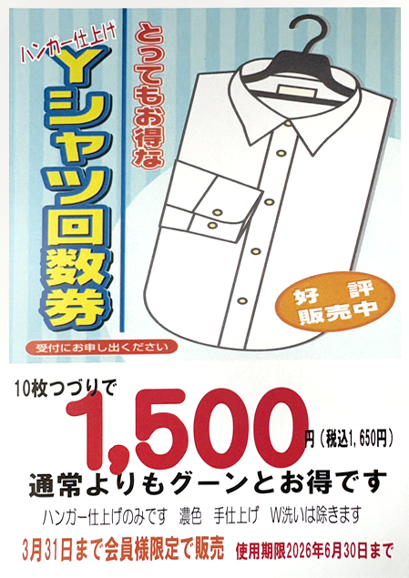 お得な「ワイシャツ回数券」販売開始のお知らせ