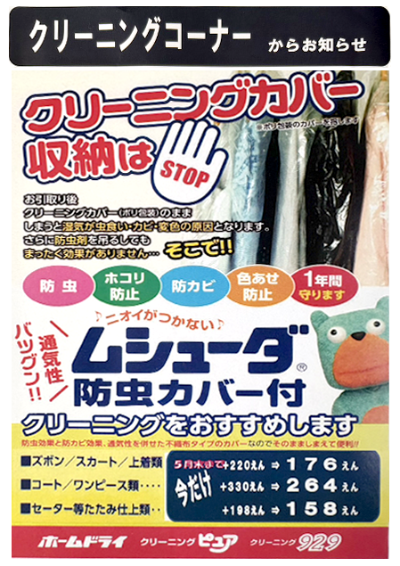 ムシューダ防虫カバー付クリーニング